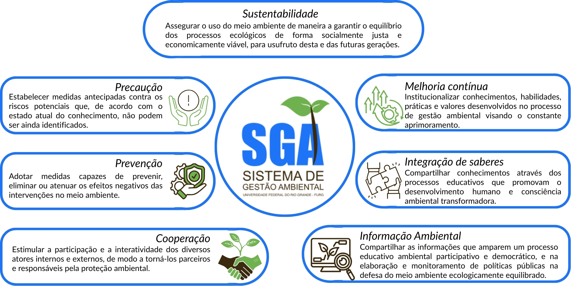 Conforme a Política Ambiental da FURG, as ações do SGA têm como base sete princípios de atuação: